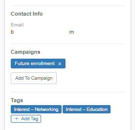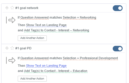 Now, if a contact clicks "Education" first and then goes back and clicks "Networking," their recorded response will show "Networking" — but both the "Interest – Education" and "Interest – Networking" tags will remain on their profile. You'll know they expressed interest in both topics: