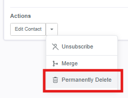 This permanently removes the contact record and all of their activity in the platform (responses, campaign history, etc.). This cannot be undone.
