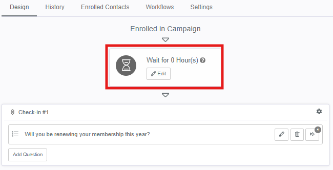 If your goal is for the first message to go out exactly at your chosen time, set the first wait time to “0”. This ensures the email triggers immediately upon enrollment: