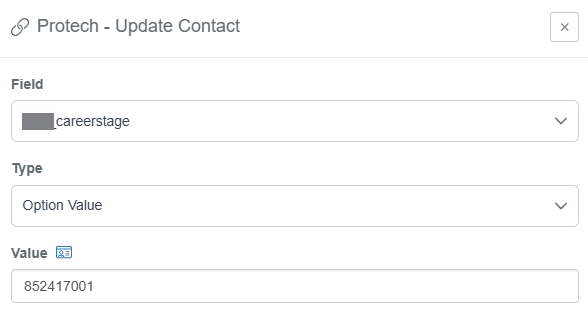 Example: If “Mid-Level” has an ID of 852417001 in Protech, you would enter that number in the Value field: